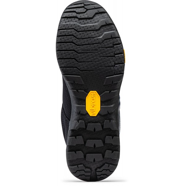Die flache Vibram-Volt-Sohle sorgt beim Treten mit Flachpedalen für maximale Sicherheit und Komfort. Dank der breiten Vorderseite und der Noppen im Fersenbereich bietet diese Sohle Halt auf den Pedalen und in jedem Terrain.