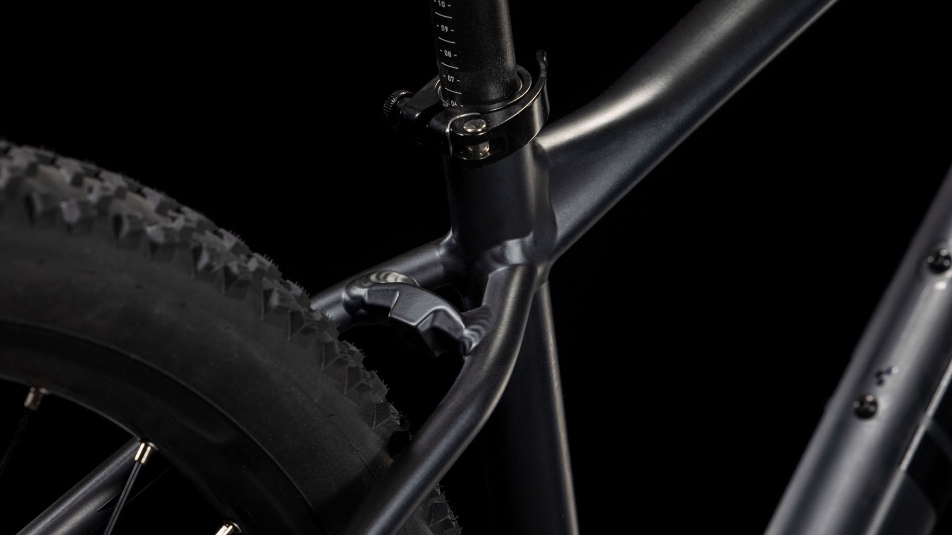 Der Attention Rahmen besticht mit seinem supercleanen Look – verantwortlich dafür: die im Smooth Welding Verfahren hergestellten Verbindungen an Steuer- und Sattelrohr. Außerdem haben wir ihm ein geschraubtes Tretlager gegeben und die Züge ins Innere verlegt, damit sie ihren Job lange machen und einfach gewartet werden können. Es gibt sogar eine Aufnahme für eine Flat Mount Scheibenbremse, die nahtlos in die Seitenständeraufnahme integriert ist. Montagepunkte für ACID Schutzbleche und Gepäckträger sind auch mit dabei. Die spezielle Geometrie hat ein niedrigeres Oberrohr für superzuverlässiges Handling und lässt viel Platz für breite, griffige, komfortabel rollende 2.25 Zoll Reifen. Dazu ist unser Size Split System breit aufgestellt – so findest du mit Sicherheit das für dich perfekt passende Attention.